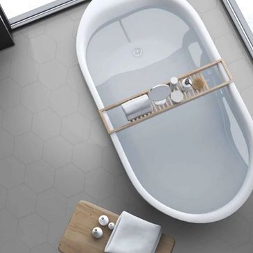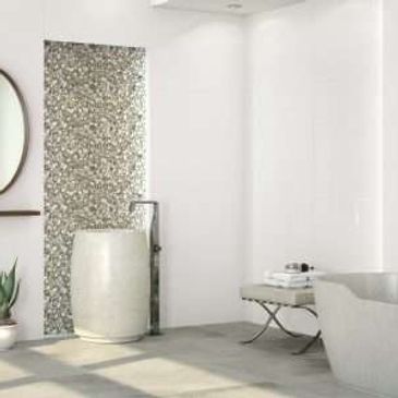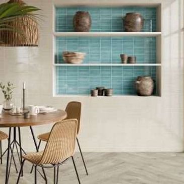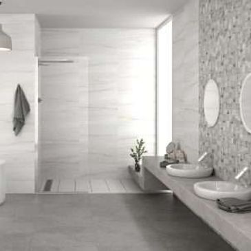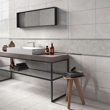 Material: Double Fired Body Ceramic (10×22 & 3×10 Bullnose), Porcelain (13×13 & 2×2 mosaic)